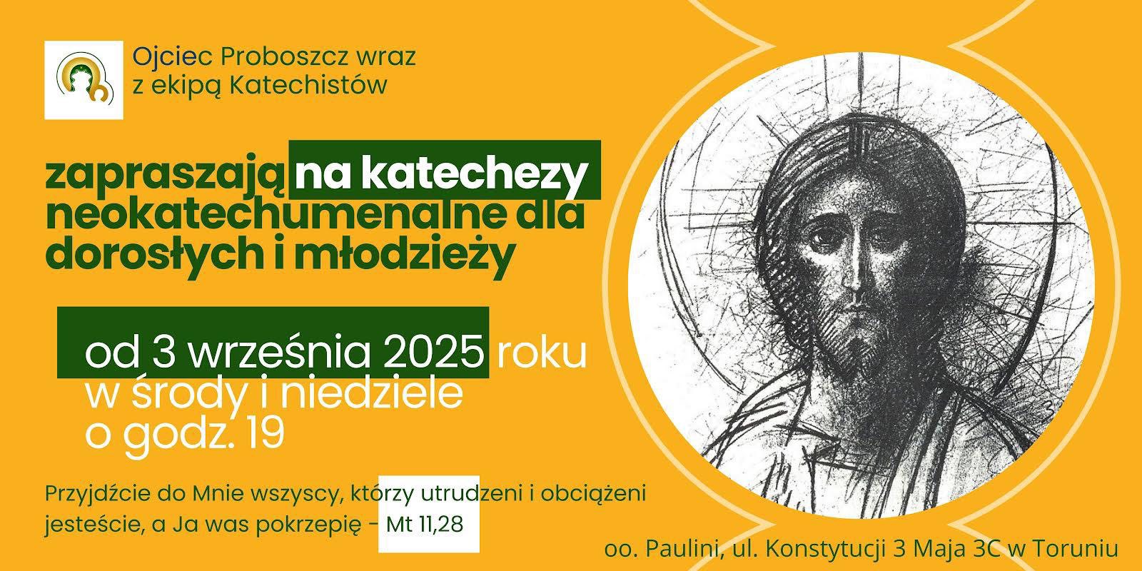 Katechezy odbywają się w środy i w niedziele o godz. 1900 w kościele.