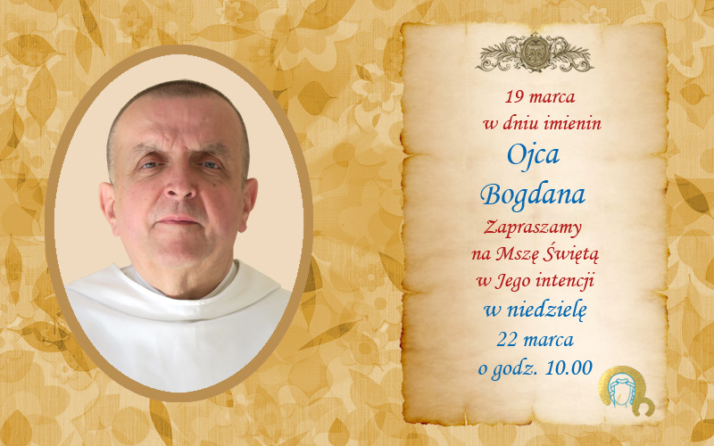 W czwartek 19 marca, w uroczystość św. Józefa, Oblubieńca Najświętszej Maryi Panny, obchodzimy dzień imienin o. Bogdana Waliczka. Na Mszę św. w Jego intencji zapraszamy w niedzielę 22 marca o godz. 10.00.